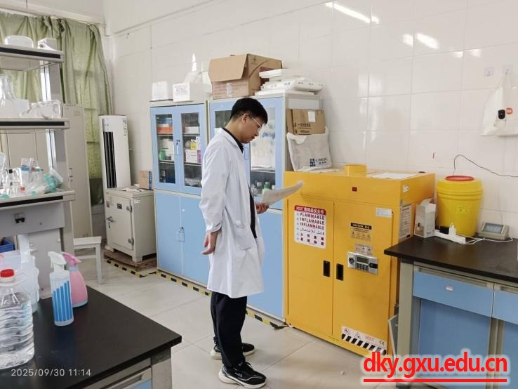 9月30日,国庆中秋双节来临之际,广西大学动物科学技术学院党委书记韦小强带队开展实验室安全专项检查。