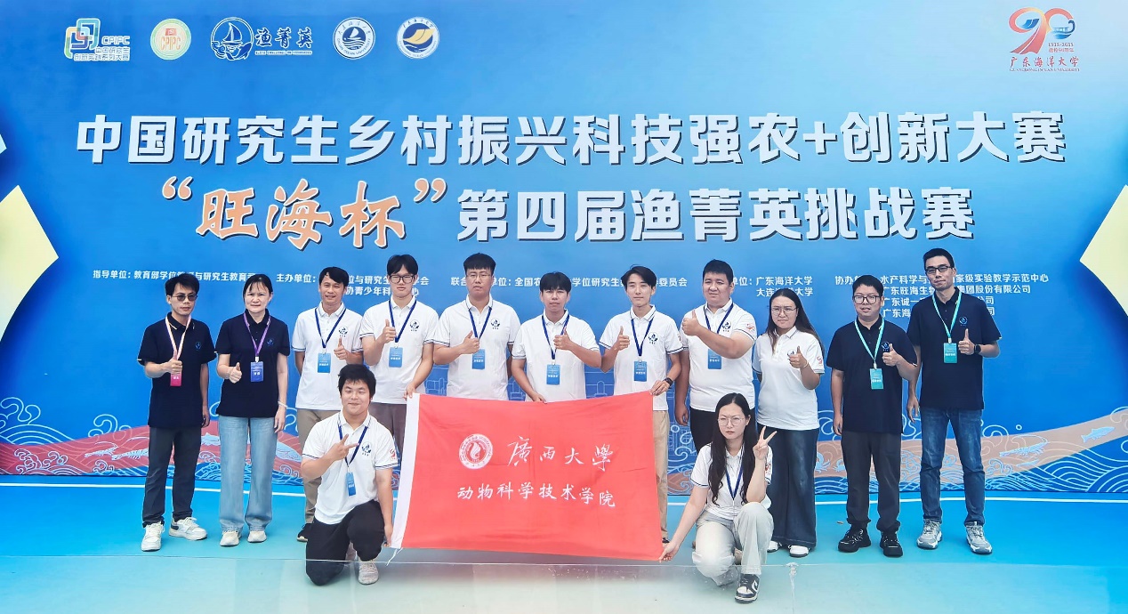 10月24日至26日,中国研究生乡村振兴科技强农+创新大赛暨“旺海杯”第四届渔菁英挑战赛在广东海洋大学湖光校区成功举办。广西大学动物科学技术学院选派出三支代表队,凭借扎实的专业知识和出色的实践能力,三支队伍均荣获二等奖,创造了广西大学渔菁英参赛最好成绩!