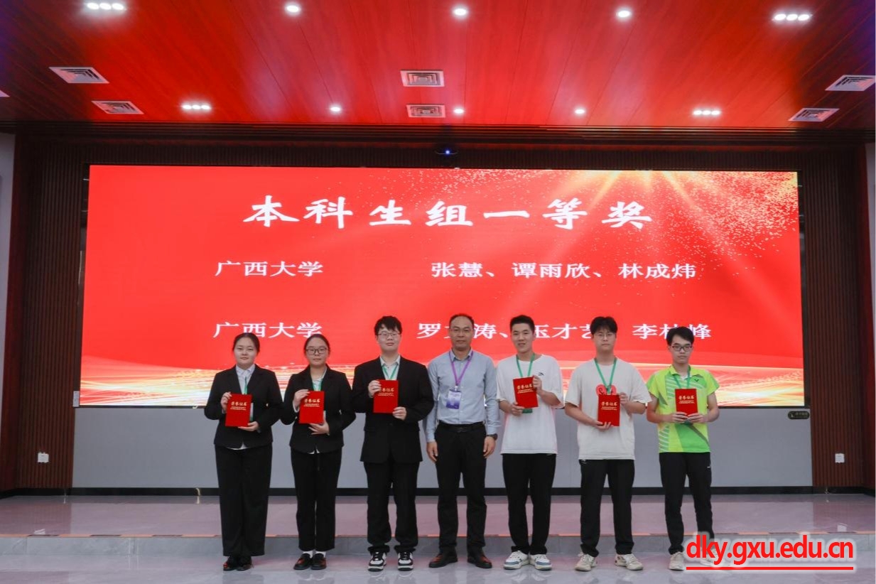 近日,第六届广西高校大学生信息素养挑战赛暨2025年大学生“AI+信息素养”大赛广西赛区决赛在北部湾大学落幕。动物科学技术学院2022级动物医学专业本科生张慧、谭雨欣与机械工程学院2023级机械设计制造及其自动化专业林成炜联合组队,荣获本科组一等奖(第一名),并获得代表广西参加全国联赛的资格。
