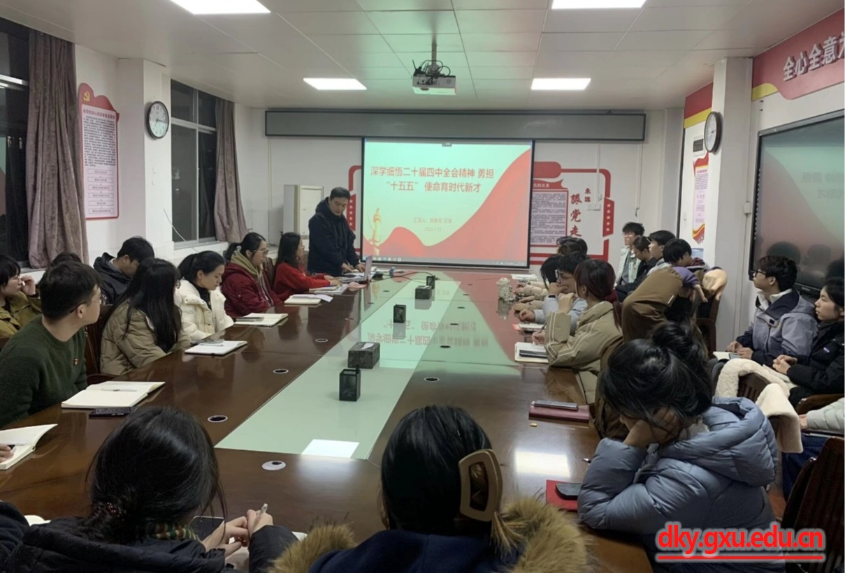 1月21日,广西大学动物科学技术学院研究生第六党支部以“学全会精神 悟奋进使命”为主题,开展特色主题党日活动,通过创新学习载体推动全员深度参与,切实拉紧入党积极分子与党组织的思想纽带。