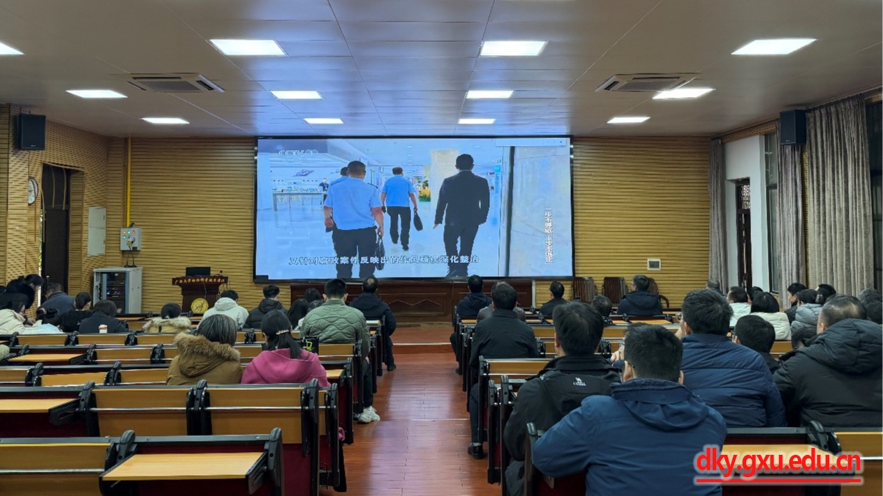 为持续深化党风廉政建设,筑牢教职工廉洁从业思想根基,广西大学动物科学技术学院于1月22日组织全院教职工召开专题廉洁警示教育大会。会议由学院纪委书记杨雪主持。