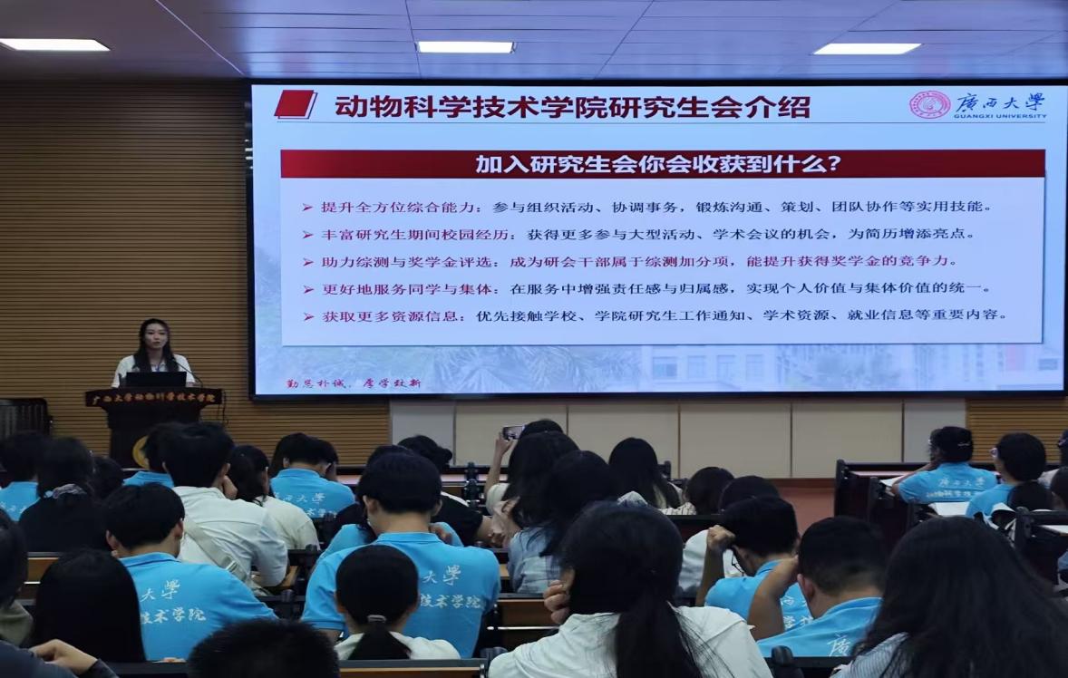 2025年9月12日上午,广西大学动物科学技术学院“沿途启航,骨干先行”能力提升专项培训在学院318会议室举行。学院团委书记刘诚老师、团委副书记马朝阳老师出席本次培训会议,研究生会全体成员参加此次会议。