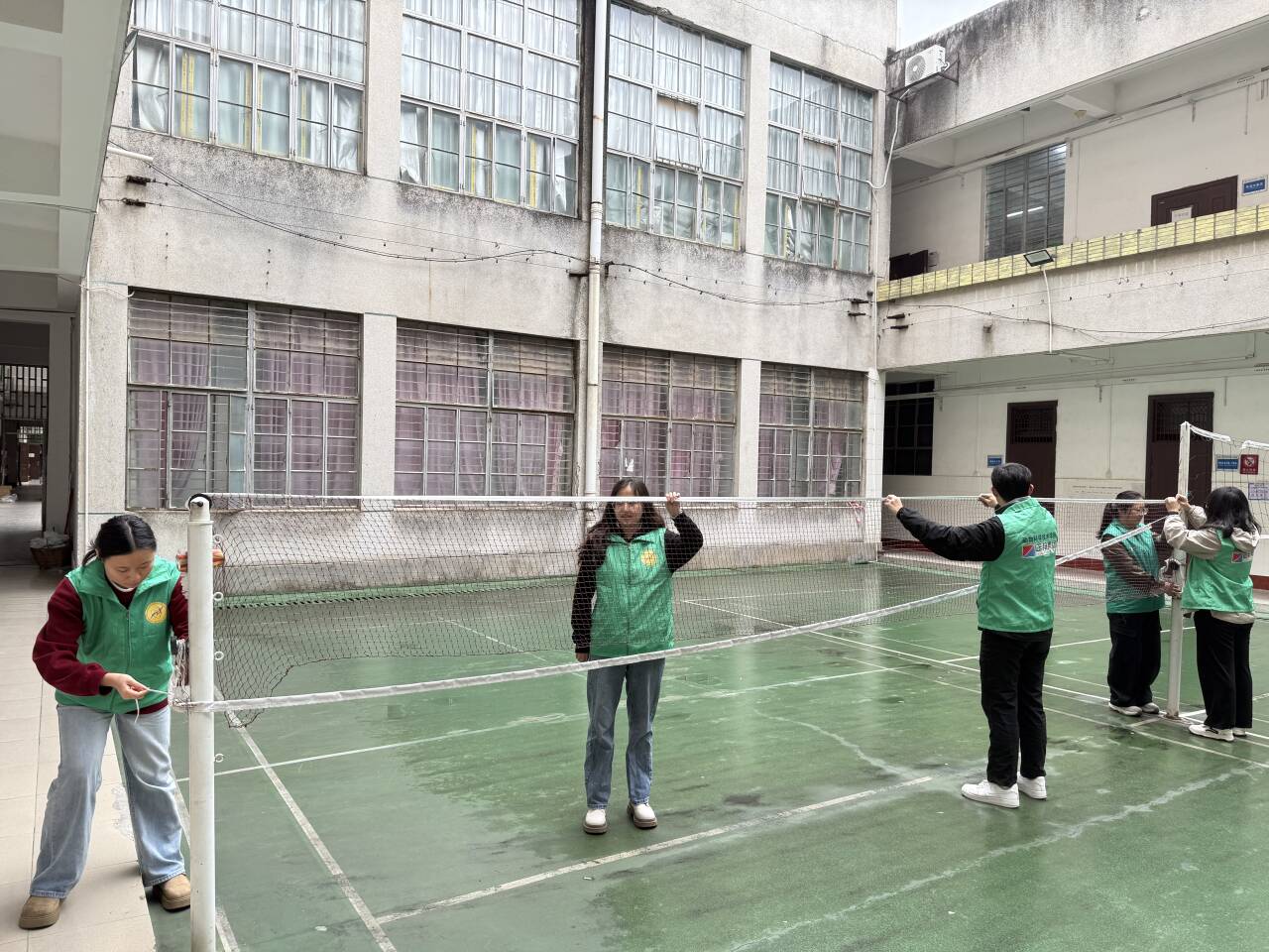 此前,由于长时间经受风吹日晒以及频繁的使用,运动场原有的排球网出现了多处破损,网面多处断裂,网绳也变得松弛无力。在进行排球运动时,排球经常从破损处穿过,不仅严重影响了运动的连贯性和趣味性,还让师生们在运动过程中需要时刻担心排球飞出场地,分散了注意力。更为关键的是,松弛的网绳缺乏足够的支撑力,在排球大力击打时,网面晃动幅度过大,存在一定安全隐患,增加了师生受伤的风险。