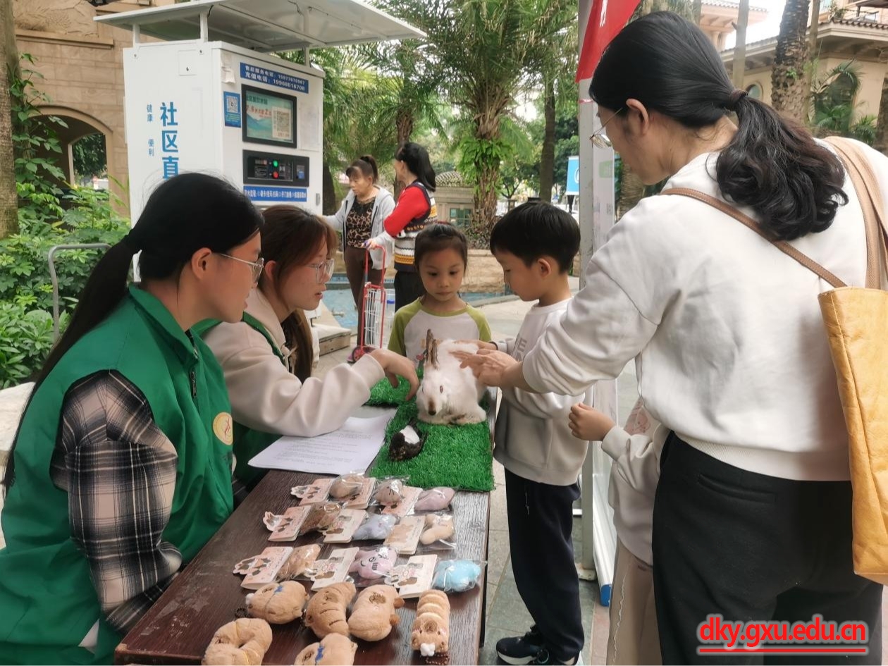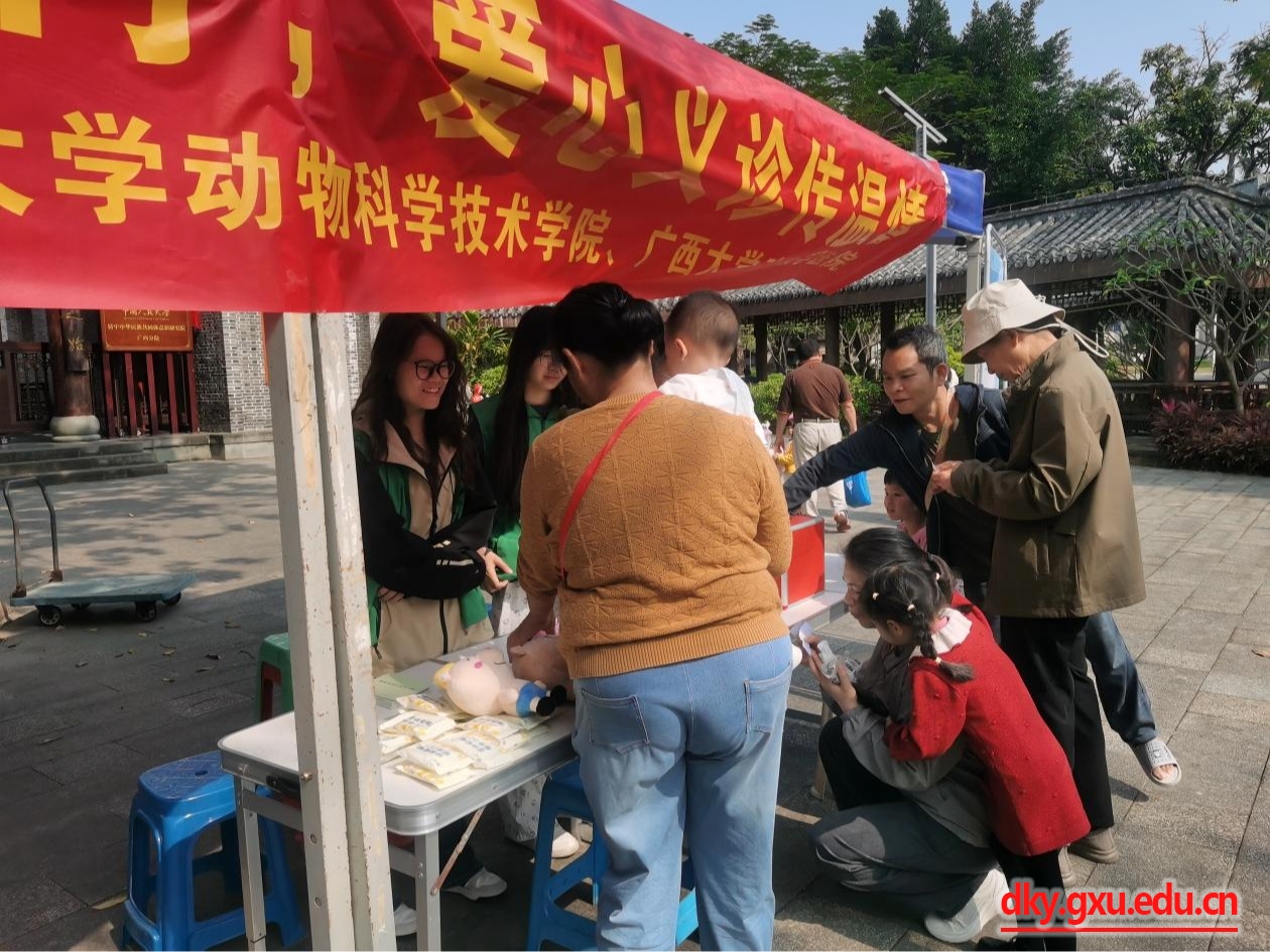 为进一步弘扬雷锋精神和“奉献、友爱、互助、进步”的志愿服务精神,充分发挥动物科学技术学院专业特色与学科优势,3月14日,学院爱联社、动物保护协会联合广西大学教学动物医院,分别在广西大学东校园劝学岛广场、南宁市西乡塘区金科瀚林华府小区广场开展两场特色志愿服务活动,以专业知识服务师生、回馈社会。动物科学技术学院副教授吴显实,团委副书记马朝阳,辅导员陆维鸿以及20余名学生参加此次活动。