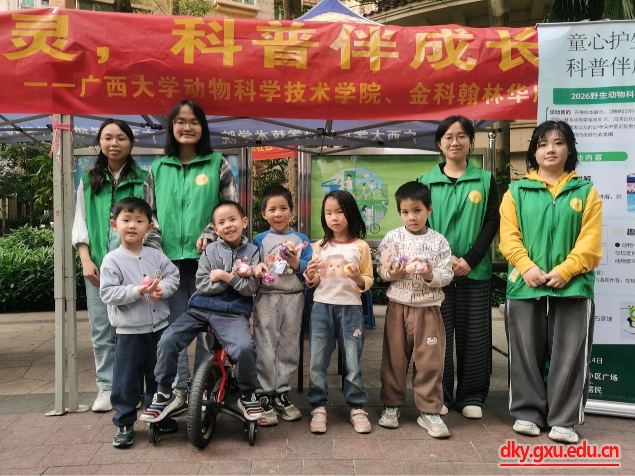 下午,动物保护协会走进南宁市西乡塘区金科瀚林华府小区广场,开展“童心护生灵,科普伴成长”志愿服务活动。志愿者们面向社区儿童与家长,开展趣味动物科普课堂,用通俗易懂的语言讲解动物习性、生命关怀、生态保护等知识,引导孩子们尊重生命、善待动物、树立生态文明理念。活动通过互动问答、卡片猜谜、科普宣讲等形式,将专业知识转化为生动有趣的科普内容,既丰富了社区儿童的课余生活,也传递了关爱生灵、守护自然的正能量,展现动科学子的责任与担当。