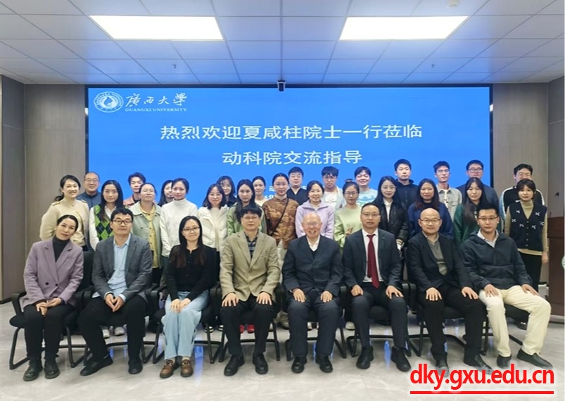 11月29日下午,中国工程院夏咸柱院士带领团队成员李恩涛副教授、杨晨博士一行,莅临广西大学动物科学技术学院开展狂犬病防控专题交流活动。此次活动依托“智汇八桂・院士专家广西行”平台,旨在将院士团队在动物疫病与人兽共患病防控领域的深厚科研积累,转化为适配广西地域特点的狂犬病综合防控策略,切实提升区域重点人兽共患病防控科学化水平。广西大学动物科学技术学院兽医学科带头人罗廷荣教授带领学院青年教师代表及研究生共同参与座谈。